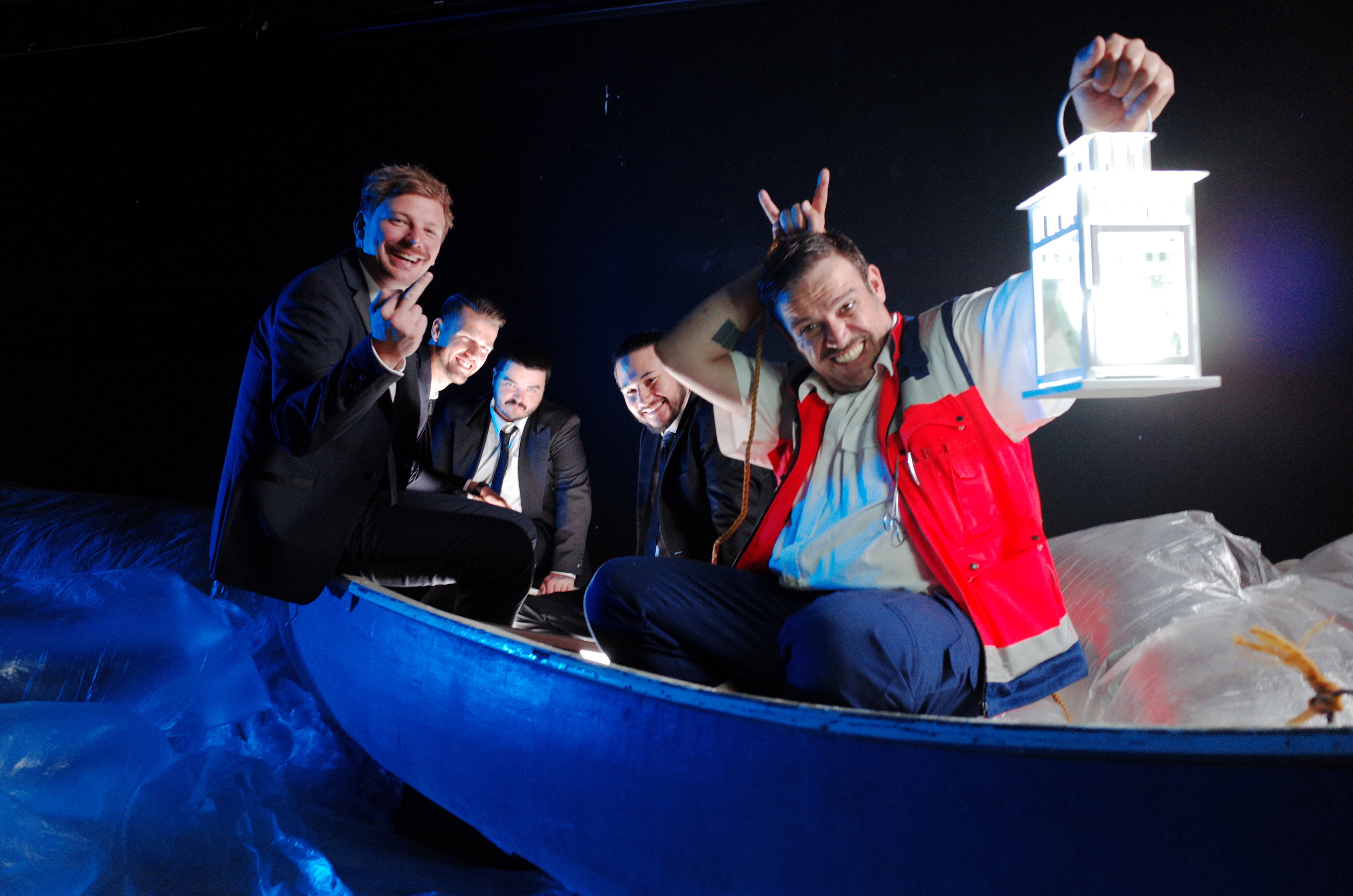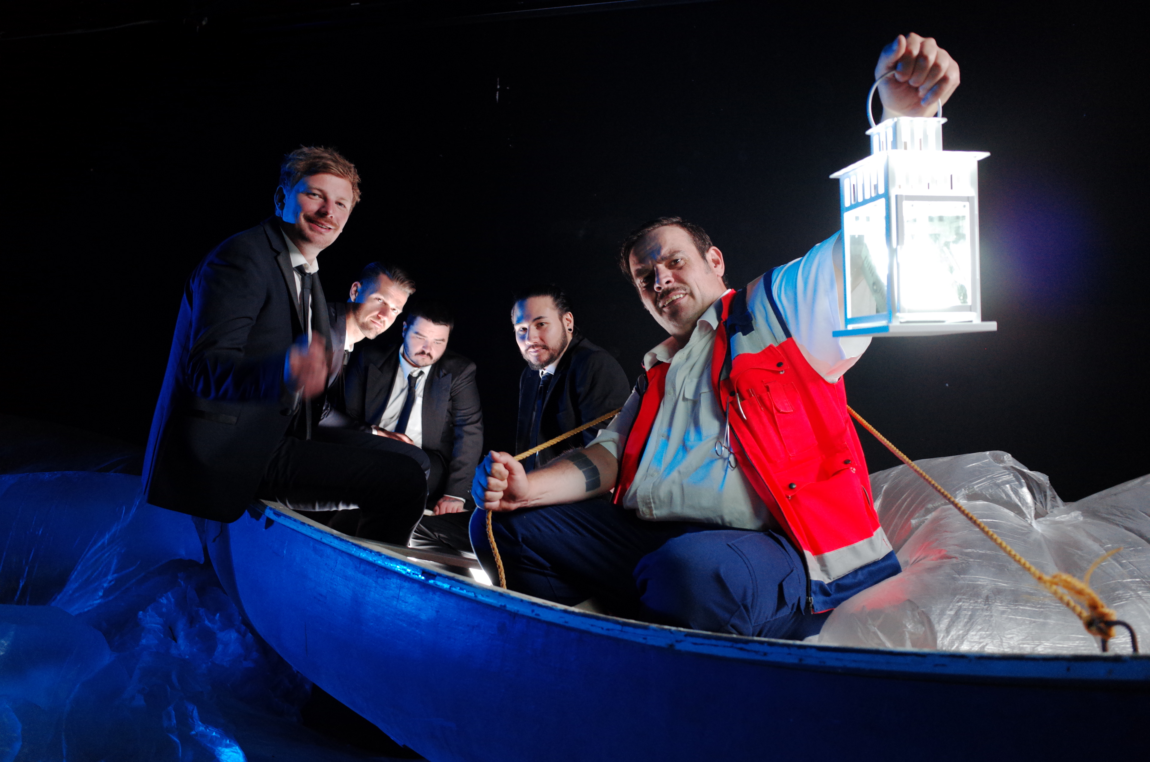 Der Feature Gast des Songs Jörkk Mechenbier musste in die Rolle des Sanitäters/ Fährmannes schlüpfen und die Band über den Totenfluss bugsieren.